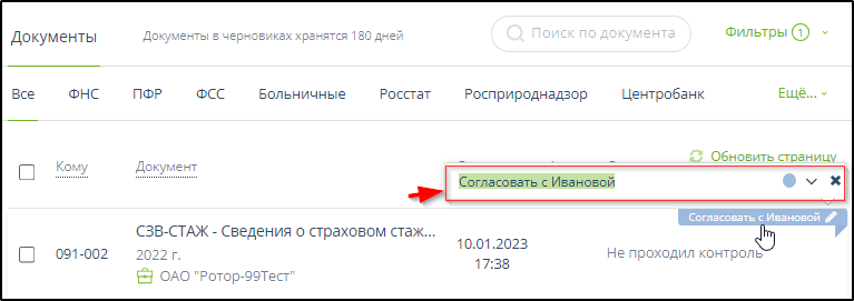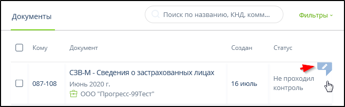 Для ввода или редактирования комментария к документу на странице списка черновиков нужно: