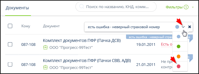 При необходимости - выбрать цвет значка комментария в списке документов. Пример: