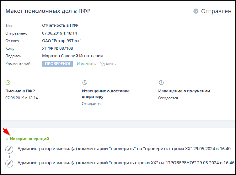 На странице ЭДО щелкнуть левой кнопкой мыши на блоке "История операций". Пример: