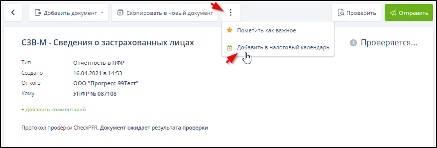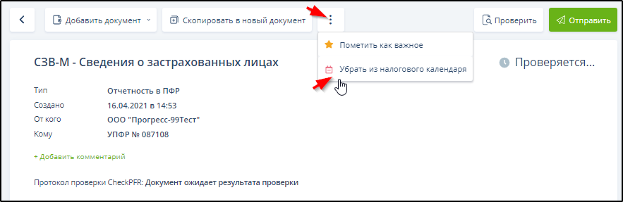 При желании можно добавить документ в список документов, заслуживающих отражения в виджете "Налоговый календарь" раздела "Рабочий стол" или удалить документ из этого списка, если он был туда ранее добавлен.