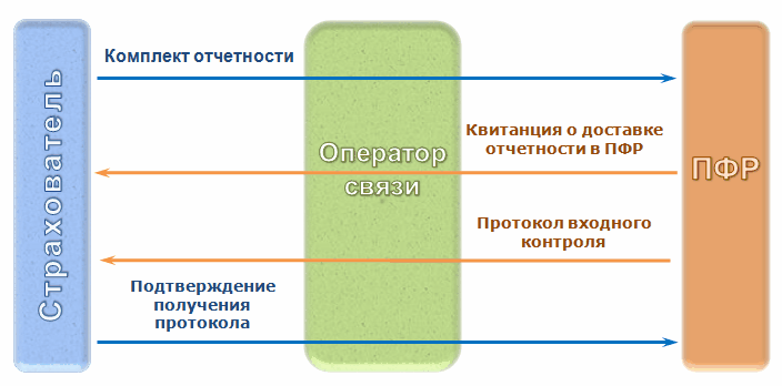 Успешный цикл ЭДО, связанного с представлением отчетности ПФР, на уровне обмена сообщениями выглядит следующим образом: