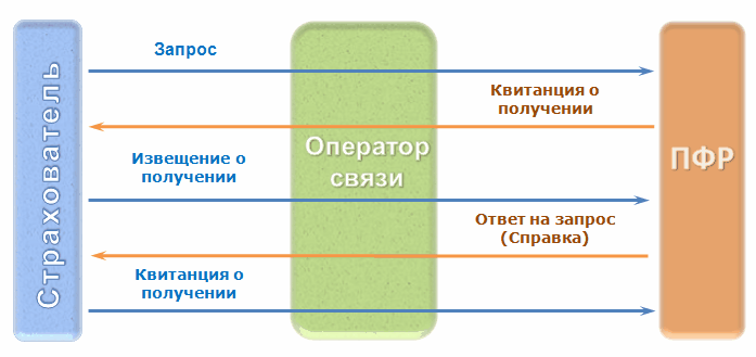 Успешный цикл ЭДО, связанного с запросом в ПФР, на уровне обмена сообщениями выглядит следующим образом: