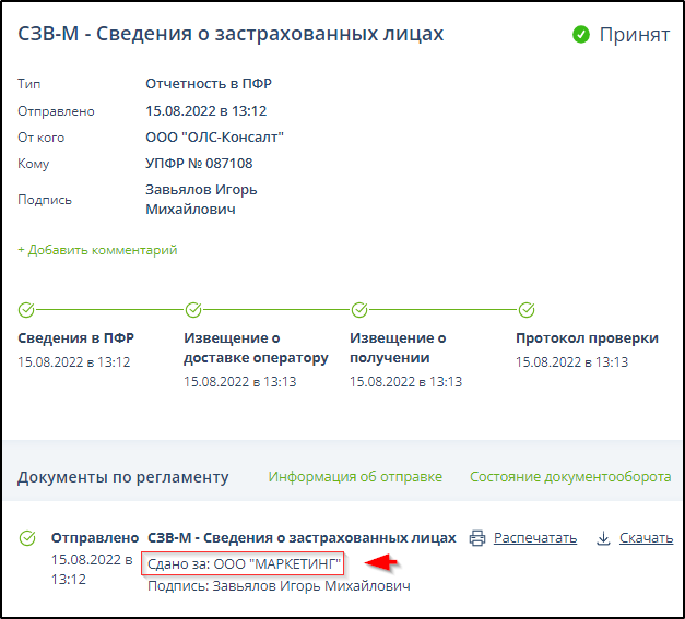 Протокол проверки, содержащий сообщение об отсутствии ошибок в переданных сведениях, является подтверждением факта представления сведений в территориальный орган ПФР.