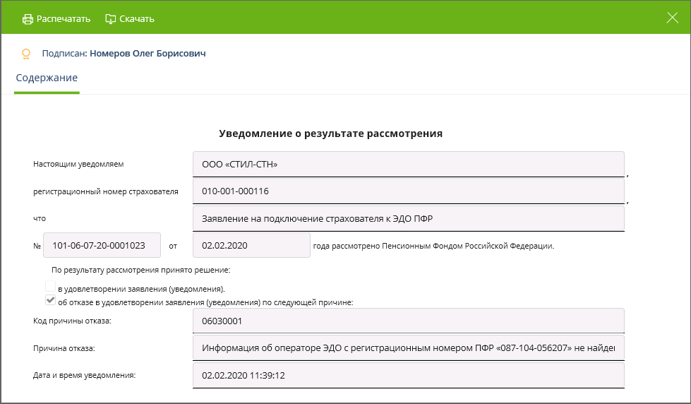 - цикл ЭДО завершен успешно.