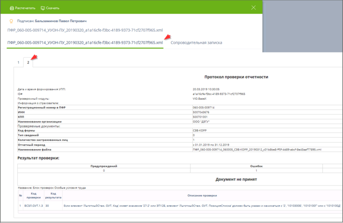 В этом случае страхователю (плательщику страховых взносов) необходимо ознакомиться с протоколом проверки, уведомлением или извещением об отказе в приеме, устранить указанные ошибки и повторить всю процедуру представления сведений.