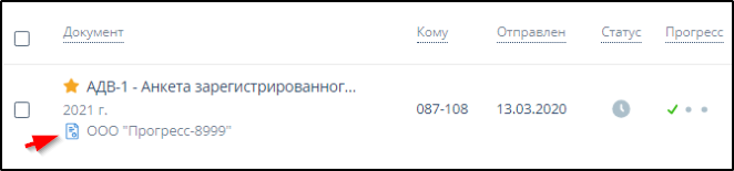Результат ЭДО отображается значком в колонке "Статус".