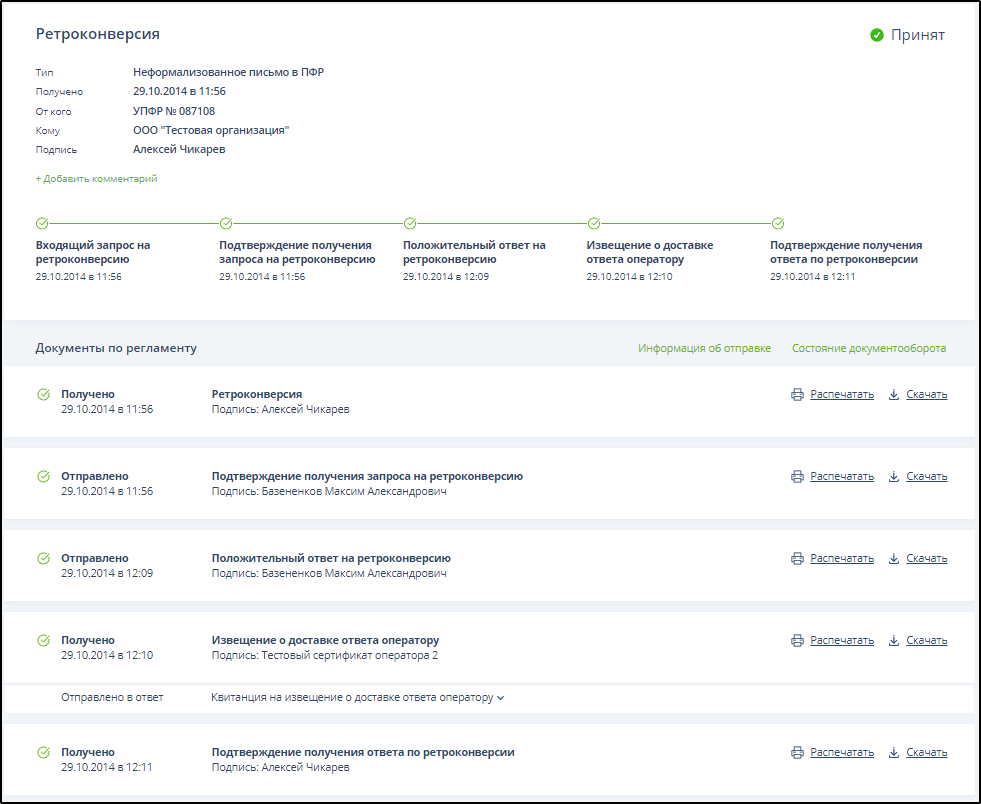 Список сообщений успешно завершенного документооборота ретроконверсии выглядит следующим образом: