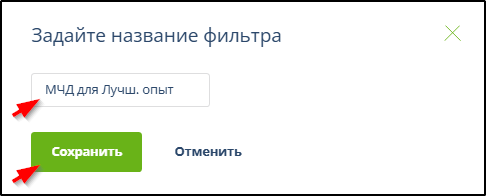 • Если в дальнейшем примененные настройки фильтрации будут полезны, то для их сохранения и формирования закладки результатов применения, - нажать кнопку "Сохранить новый фильтр" и указать название закладки для результатов применения фильтра. Пример: