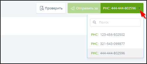 При наличии кнопки Отправить за нужно выбрать регистрационный номер страхователя в меню справа от этой кнопки. Пример: