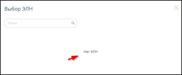 После отправки реестров сведения ЭЛН, использованные в отправленных реестрах, не будут отображаться при формировании очередных реестров. После отправки в реестрах сведений всех ЭЛН и нажатия кнопки "Создать по ЭЛН" в окне выбора ЭЛН отобразится сообщение "Нет ЭЛН". Пример: