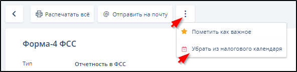 На странице ЭДО при желании можно добавить документ отчётности в список документов, заслуживающих отражения в виджете "Налоговый календарь" раздела "Рабочий стол" или удалить документ из этого списка, если он был туда ранее добавлен.