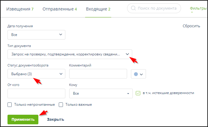 Для поиска документа можно указать параметры фильтрации. Пример:
