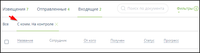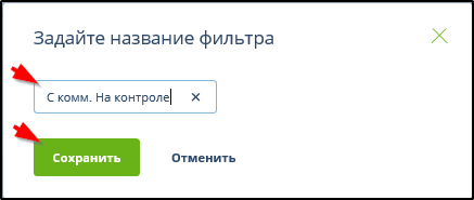 После нажатия кнопки "Сохранить" сформируется постоянная закладка для результатов применения сохраненных настроек фильтра. Пример отображения сформированной пользователем закладки фильтра "С комм. На контроле":