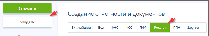 • Установить переключатель в положение "Росстат".