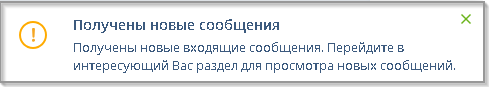Получение новых сообщений сопровождается соответствующим сообщением: