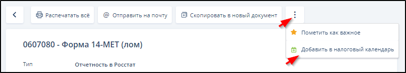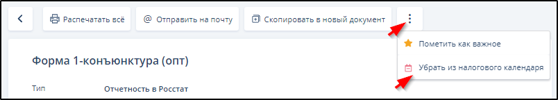 На странице ЭДО при желании можно добавить документ отчётности в список документов, заслуживающих отражения в виджете "Налоговый календарь" раздела "Рабочий стол" или удалить документ из этого списка, если он был туда ранее добавлен.