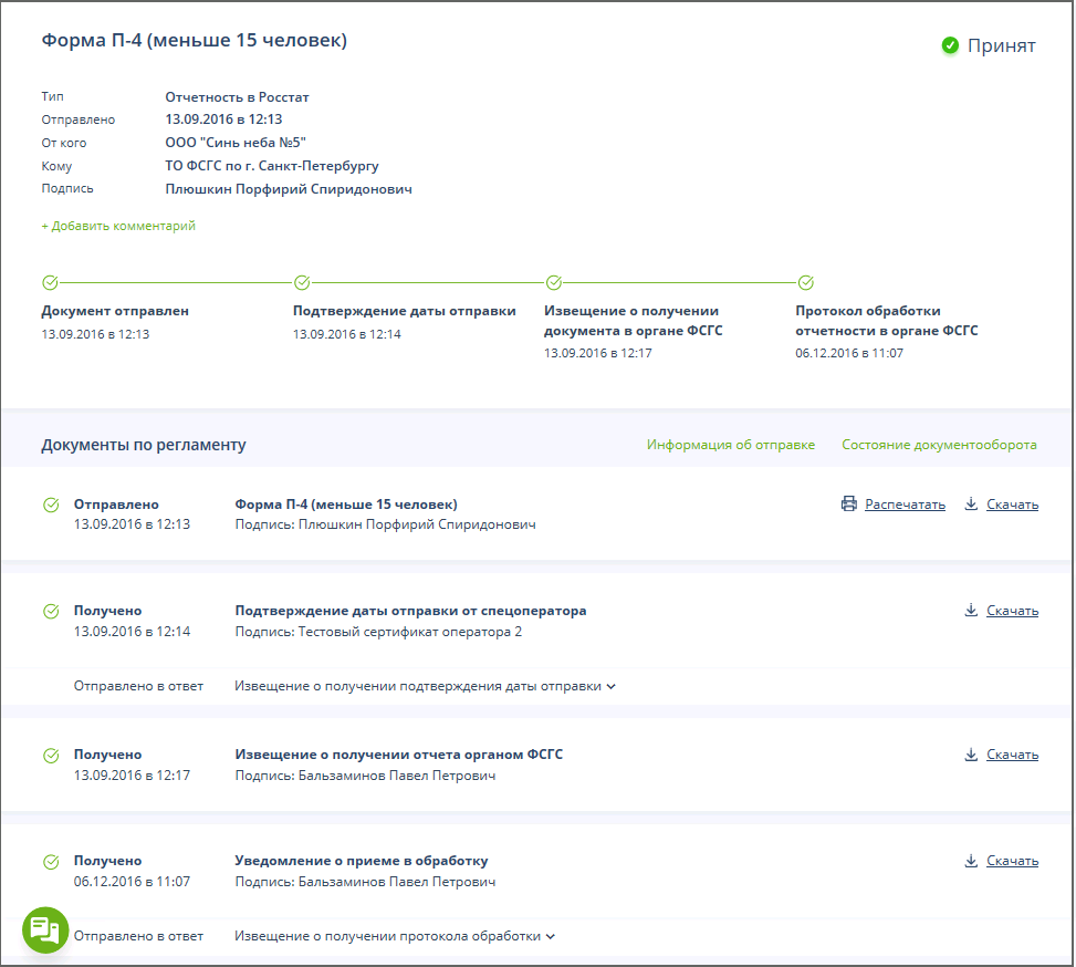 Страница успешно завершенного ЭДО представления первичных статистических данных в ТОГС имеет следующий вид: