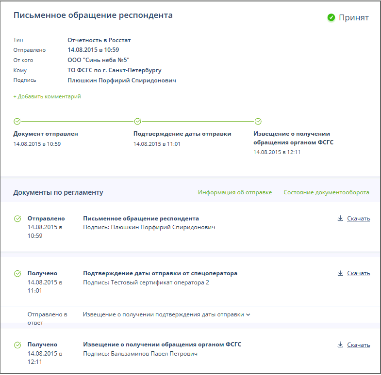 Страница успешно завершенного ЭДО обращения в ТОГС имеет следующий вид: