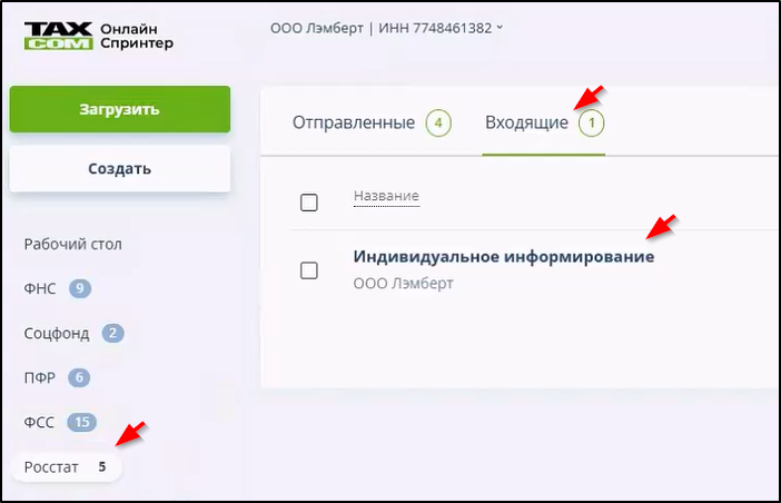 Для чтения писем индивидуального информирования и информационной рассылки следует открыть подраздел "Входящие" раздела "Росстат" и перейти по ссылке в колонке "Название". Пример: