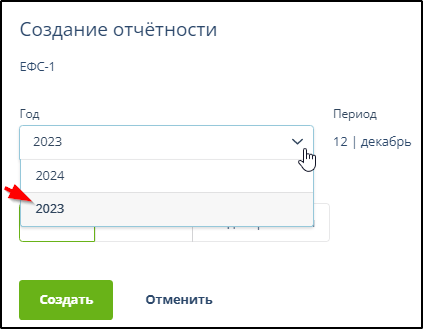 После того, как будет выбрана форма бланка, - выбрать значение из списка в поле "Год".