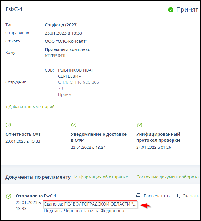 При получении от Соцфонда документа, предусмотренного регламентом, данный документ автоматически размещается в пакет документов, с которыми он связан по содержанию.