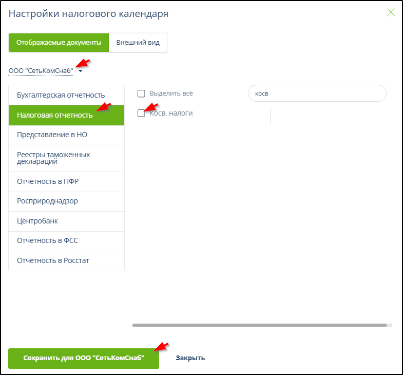Настройка состава напоминаний налогового календаря и состава списка бланков отчётности