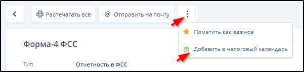 На странице ЭДО при желании можно добавить документ отчётности в список документов, заслуживающих отражения в виджете "Налоговый календарь" раздела "Рабочий стол" или удалить документ из этого списка, если он был туда ранее добавлен.